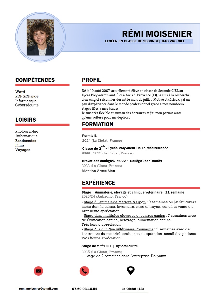 Je m’appelle Rémi MOISENIER, j’ai 18 ans et je suis passionné par l’informatique et la cybersécurité.